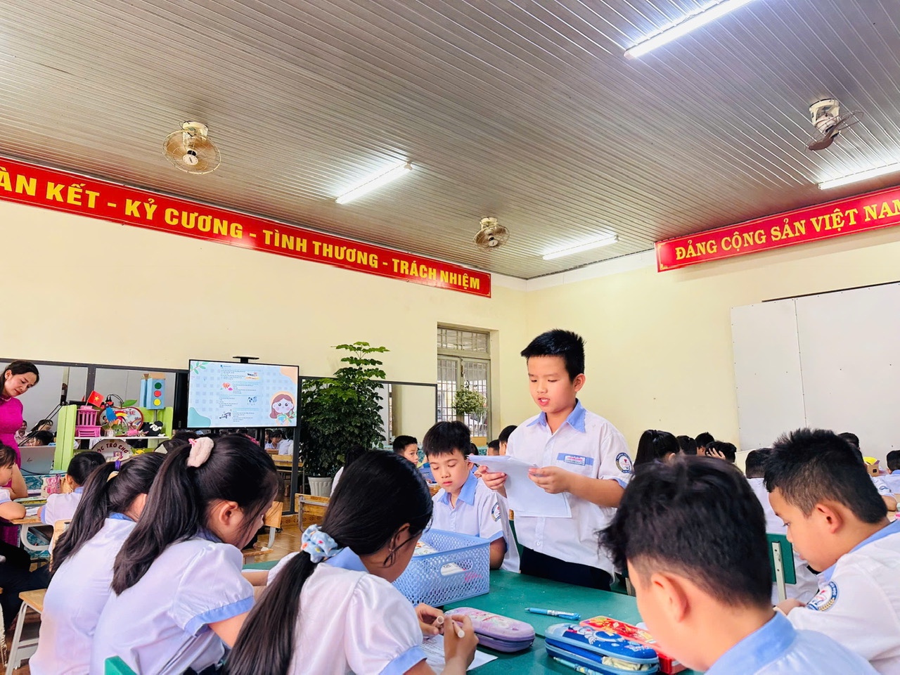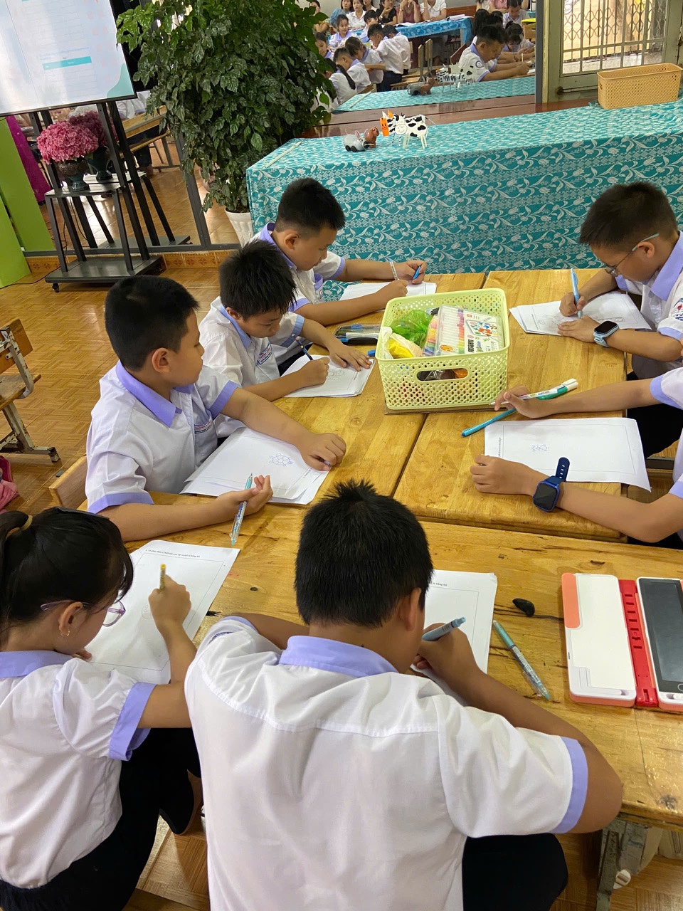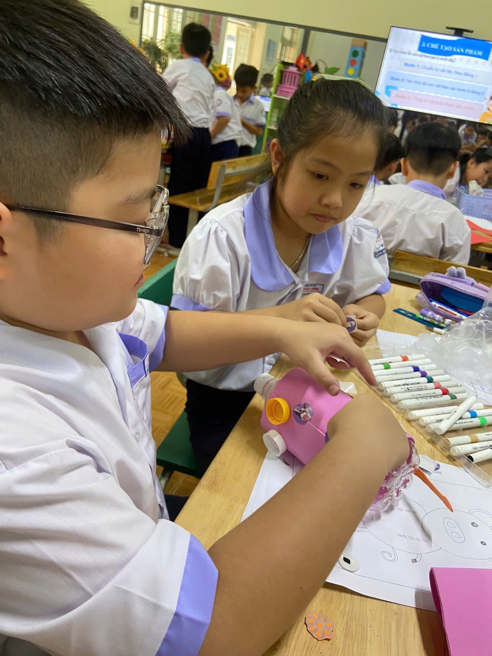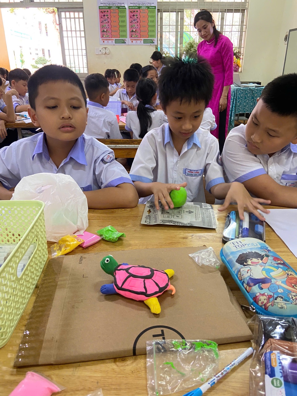 Một trong những nội dung sinh hoạt là thực hiện buổi sinh hoạt là tiết dạy minh họa ứng dụng Bài học STEAM môn Mĩ thuật lớp 3 với chủ đề “Góc học tập của em” (bài học : “Con vật ngộ nghĩnh 3D”), do cô giáo Lê Thị Ánh – giáo viên mĩ thuật thực hiện. Tiết học đã minh chứng rõ nét cách lồng ghép các yếu tố Khoa học, Kỹ thuật và Nghệ thuật, Toán học vào bài giảng Mĩ thuật một cách sáng tạo và hiệu quả. Học sinh được trực tiếp tham gia vào quá trình thiết kế, chế tạo sản phẩm, biến kiến thức bài học thành các ứng dụng thực tế sinh động, khơi dậy niềm hứng thú, tạo động lực cho các em học sinh trong học tập.