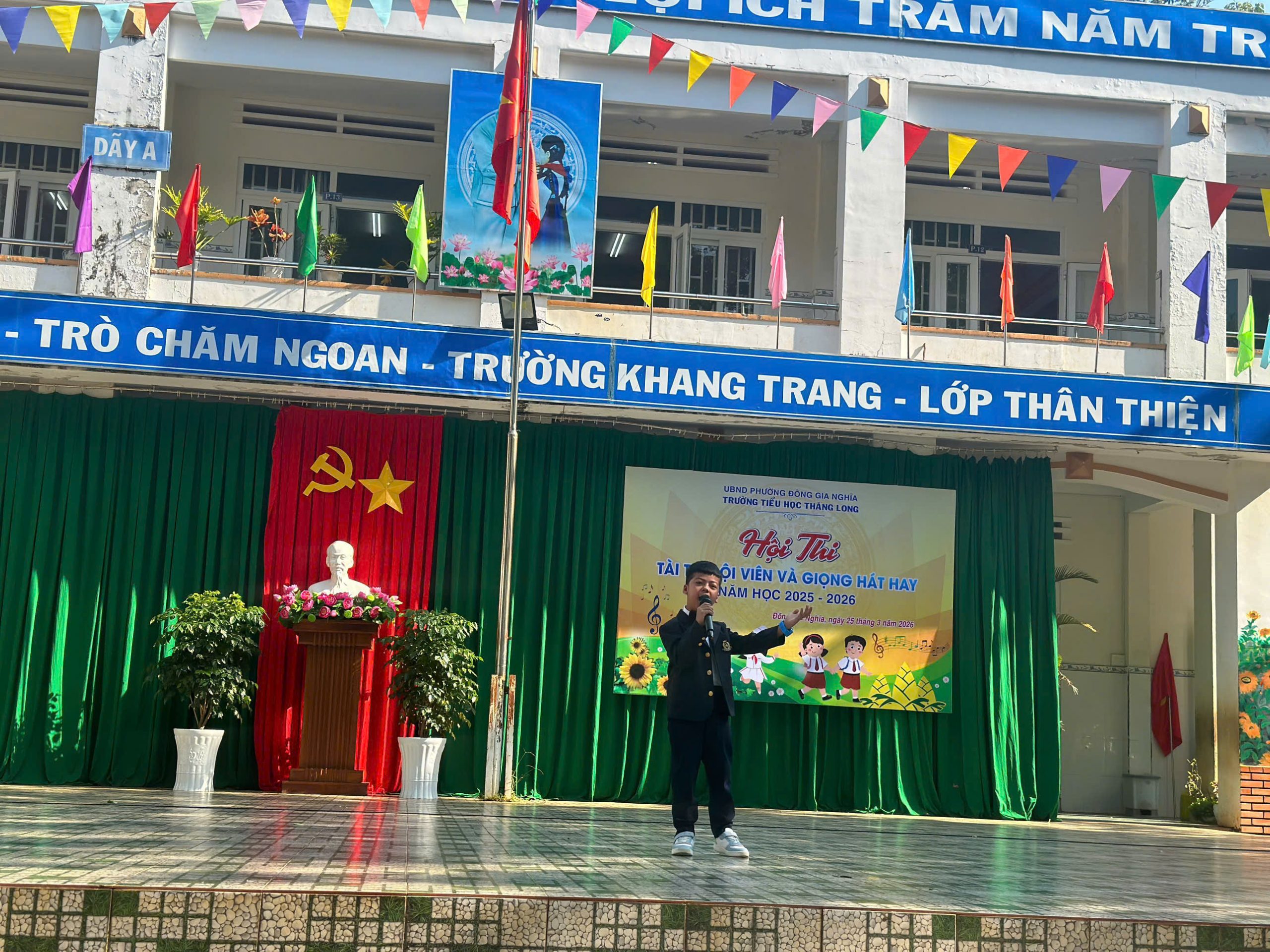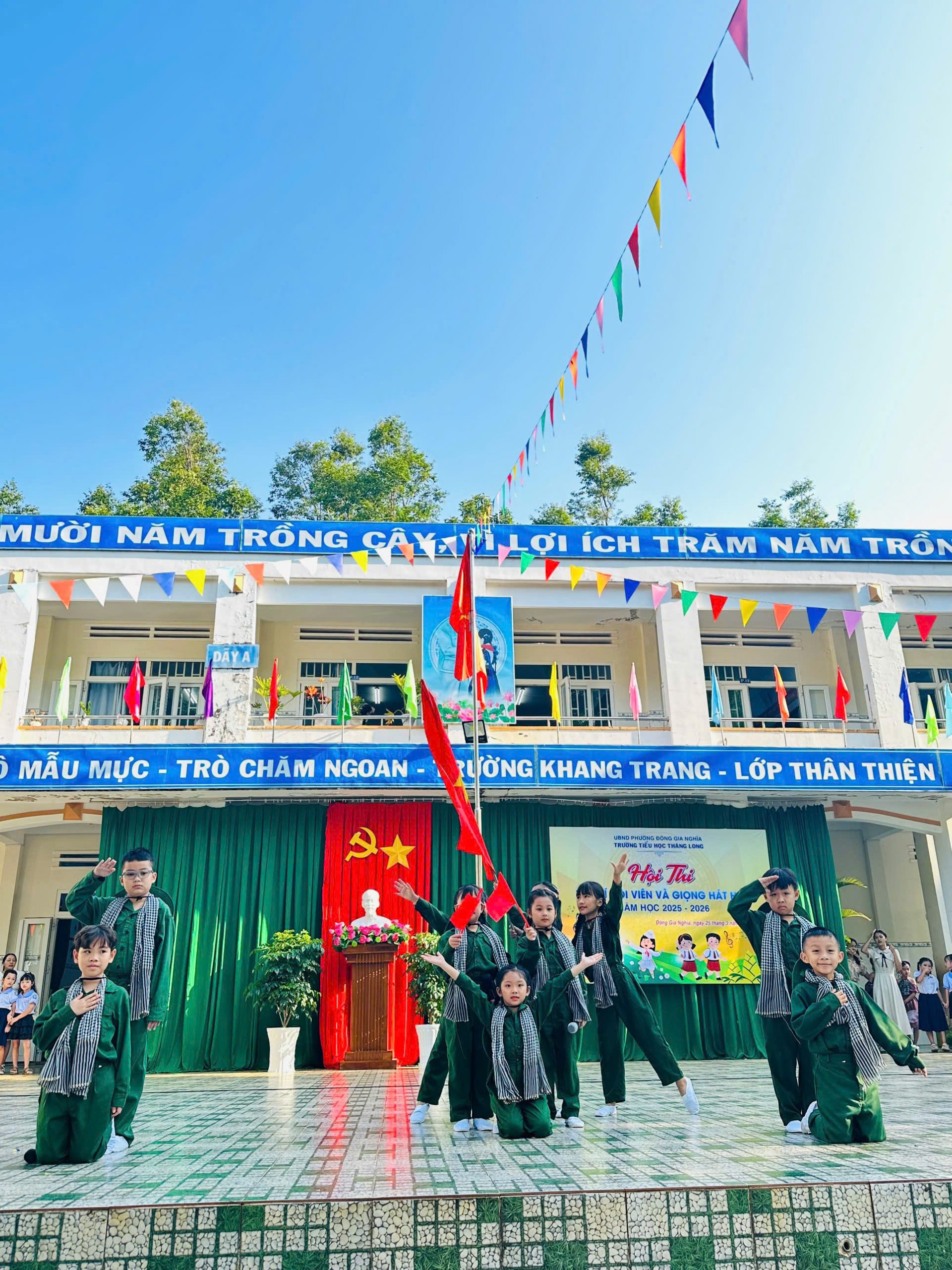 Trong không khí thi đua sôi nổi chào mừng kỷ niệm 95 năm Ngày thành lập Đoàn TNCS Hồ Chí Minh (26/3/1931 – 26/3/2026), ngày 25/3/2026 vừa qua, Liên đội trường Tiểu học Thăng Long đã tổ chức thành công Hội thi “Tài – Trí đội viên” và “Giọng hát hay”, một sân chơi ý nghĩa nhằm tuyên truyền, giáo dục truyền thống vẻ vang của dân tộc và tổ chức Đội, giúp các em thiếu nhi thêm tự hào và phấn đấu trở thành con ngoan, trò giỏi, cháu ngoan Bác Hồ. Hội thi đã diễn ra trọn vẹn với những màn tranh tài đầy hấp dẫn, mang lại nhiều cung bậc cảm xúc cho thầy và trò nhà trường.