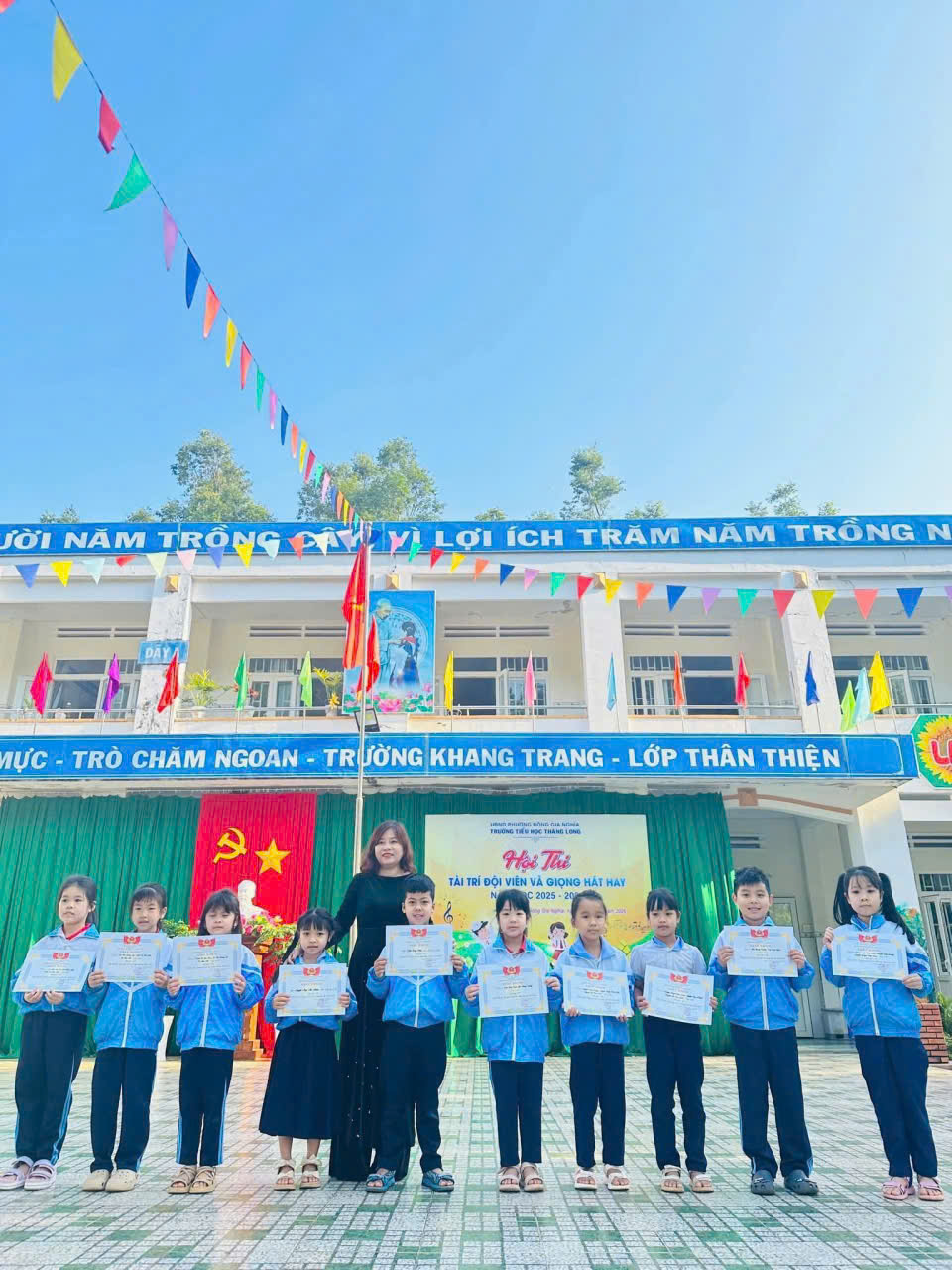Ở nội dung “Giọng hát hay”, các em học sinh khối 1, 2, 3 đã mang đến những giai điệu ngọt ngào qua các tiết mục ca ngợi quê hương, Bác Hồ và mái trường. Sự tự tin và ánh mắt hồn nhiên của các “ca sĩ nhí” đã thực sự chạm đến trái tim của đông đảo khán giả. Song song đó, phần thi “Tài – Trí đội viên” dành cho khối 4 và 5 lại thu hút bởi sự thông minh và bản lĩnh thông qua các thử thách quản trò tài năng, phần thi trí tuệ tìm hiểu về Bác Hồ, truyền thống của Đội TNTPHCM và đặc biệt là phần thi ghép tranh thuyết trình về các chủ đề Bác Hồ, anh hùng dân tộc, phong cảnh quê hương, trường lớp, … Sự nhanh nhẹn và tinh thần đoàn kết của các em không chỉ cho thấy kiến thức vững vàng mà còn thể hiện sự tự tin, năng động trong mọi hoạt động. Kết thúc hội thi, Ban tổ chức đã trao 2 giải Nhất, 5 giải Nhì, 6 giải Ba và 4 giải Khuyến khích cho nội dung giọng hát hay; đồng thời trao 5 giải Quản trò tài năng cùng 10 giải tập thể cho các Chi đội xuất sắc. Đây là phần thưởng xứng đáng cho những nỗ lực rèn luyện, góp phần nuôi dưỡng tài năng và thắp sáng ngọn lửa phong trào thiếu nhi của nhà trường.