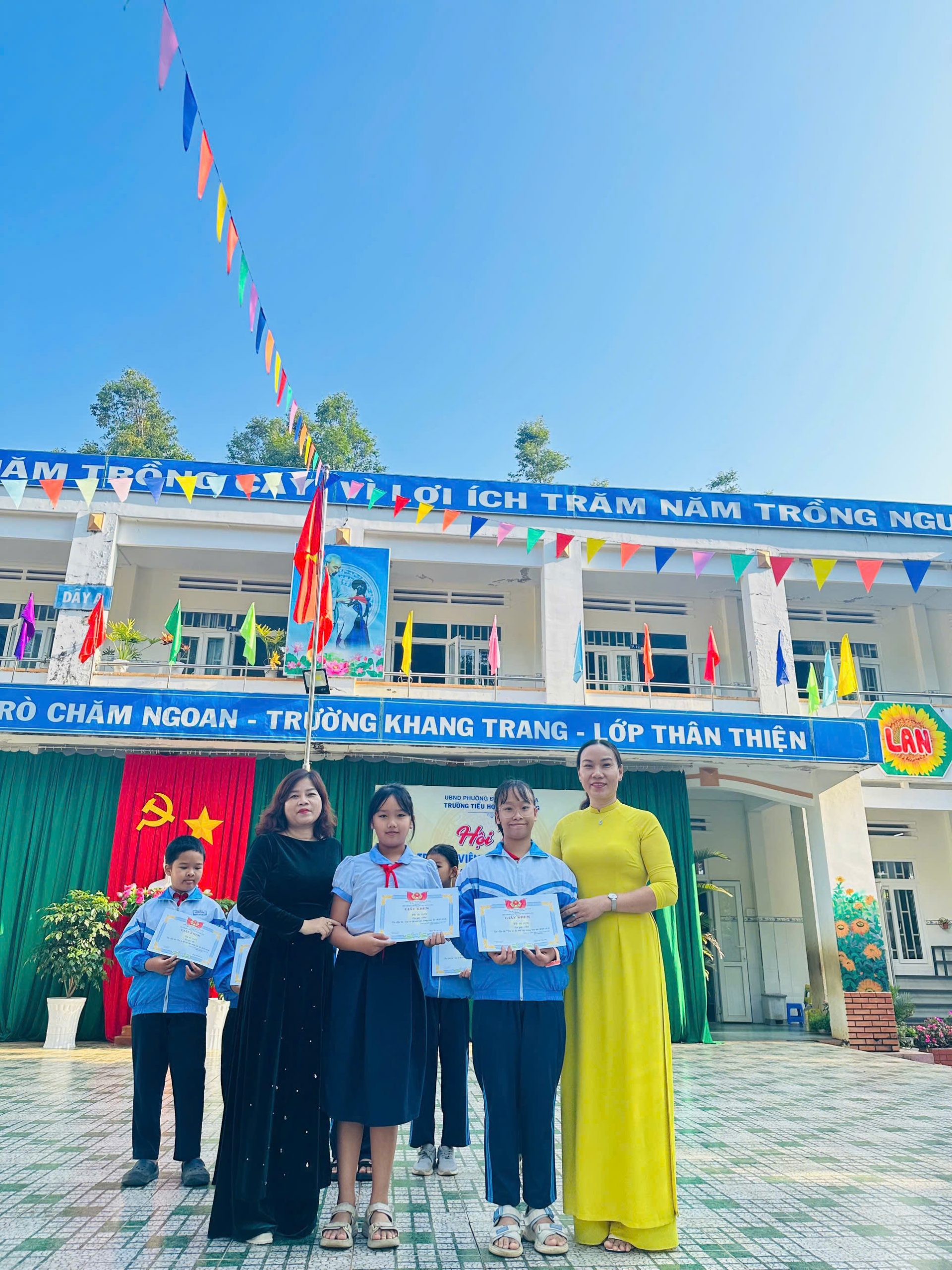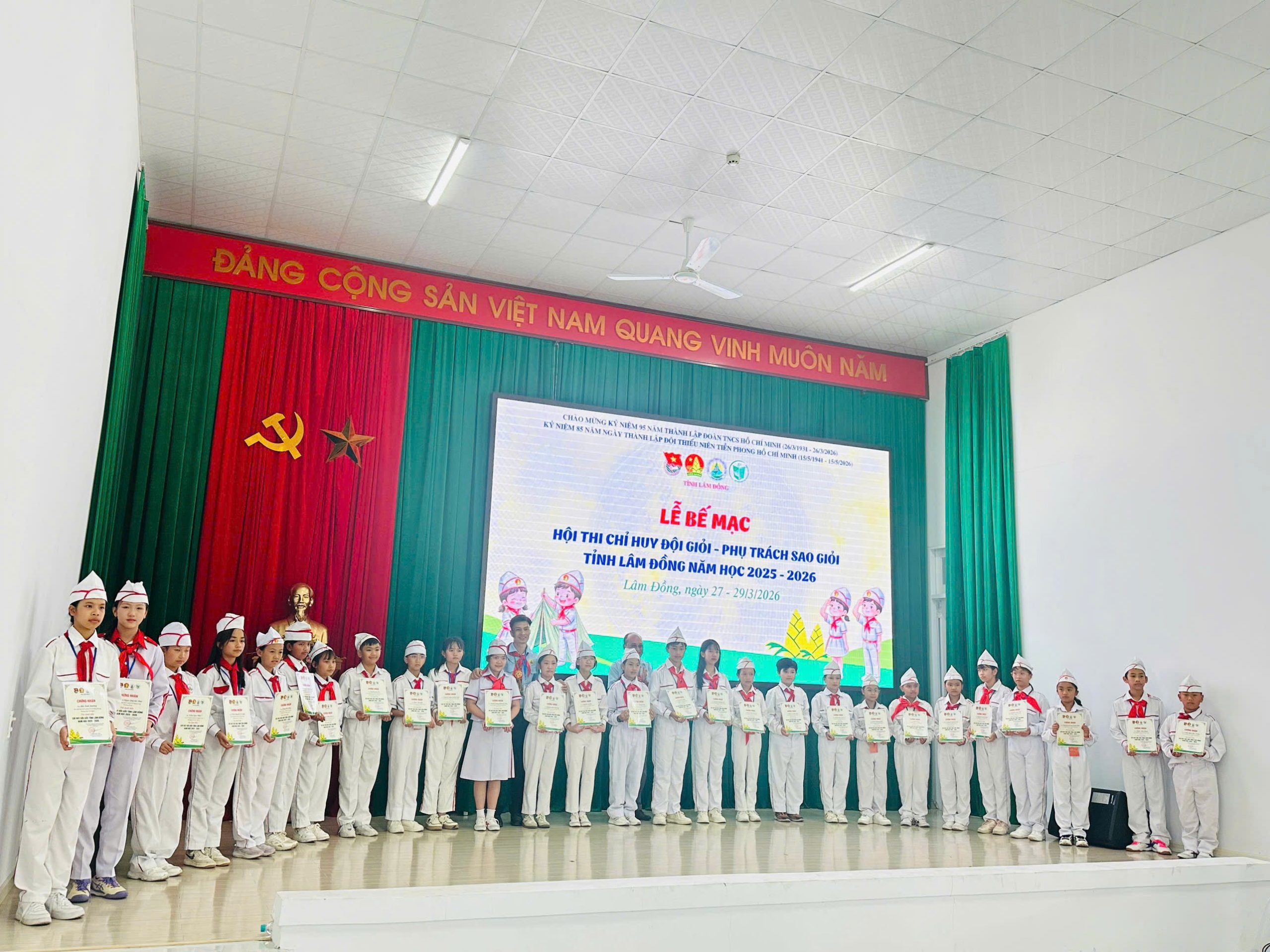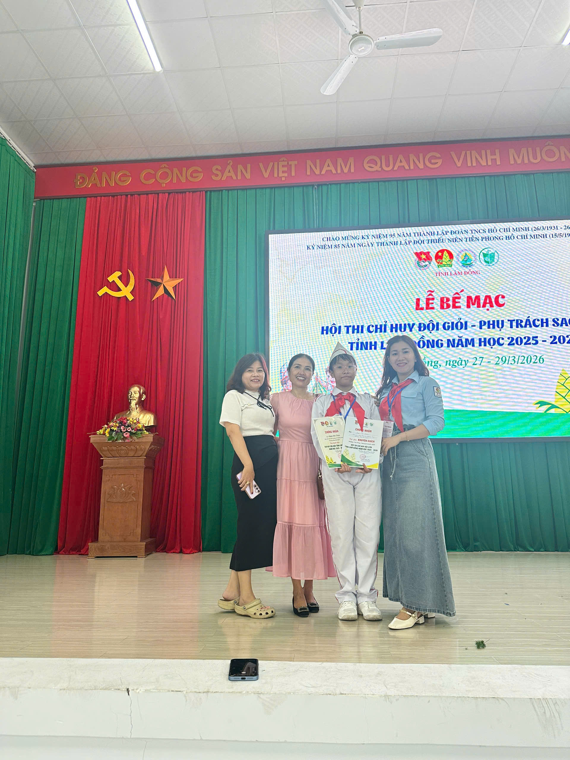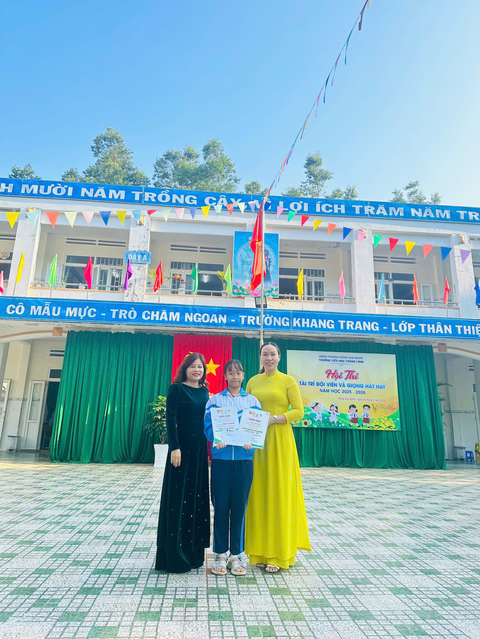 Và cũng chính từ Hội thi được tổ chức cấp trường này, em Đàm Yên Thảo, học sinh lớp 5A3, đã được lựa chọn là gương mặt tiêu biểu đại diện cho Liên đội tham gia Hội thi “Chỉ huy Đội giỏi – Phụ trách Sao giỏi” cấp tỉnh do Hội đồng Đội tỉnh Lâm Đồng tổ chức. Trải qua các phần thi đầy thử thách từ lý thuyết đến thực hành kỹ năng nghiệp vụ Đội, Yên Thảo đã khẳng định được năng lực xuất sắc và sự tự tin của mình. Kết quả chung cuộc, em đã vinh dự đạt giải Khuyến khích nội dung Phụ trách Sao giỏi và được công nhận danh hiệu Chỉ huy Liên đội giỏi cấp tỉnh. Thành tích của em không chỉ là niềm tự hào của lớp 5A3 mà còn khẳng định chất lượng công tác Đội vững mạnh của nhà trường. Những nỗ lực của Yên Thảo chính là tấm gương để các bạn đội viên học tập, góp phần xây dựng phong trào Đội ngày càng tiến bước đi lên.
